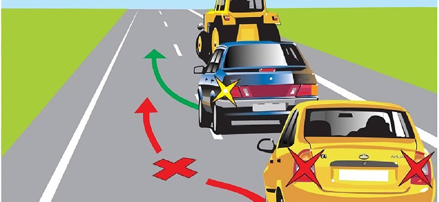 Необходимо запомнить одно простое правило: запрещено маневрировать, если авто, которое едет впереди или позади, начало маневрировать