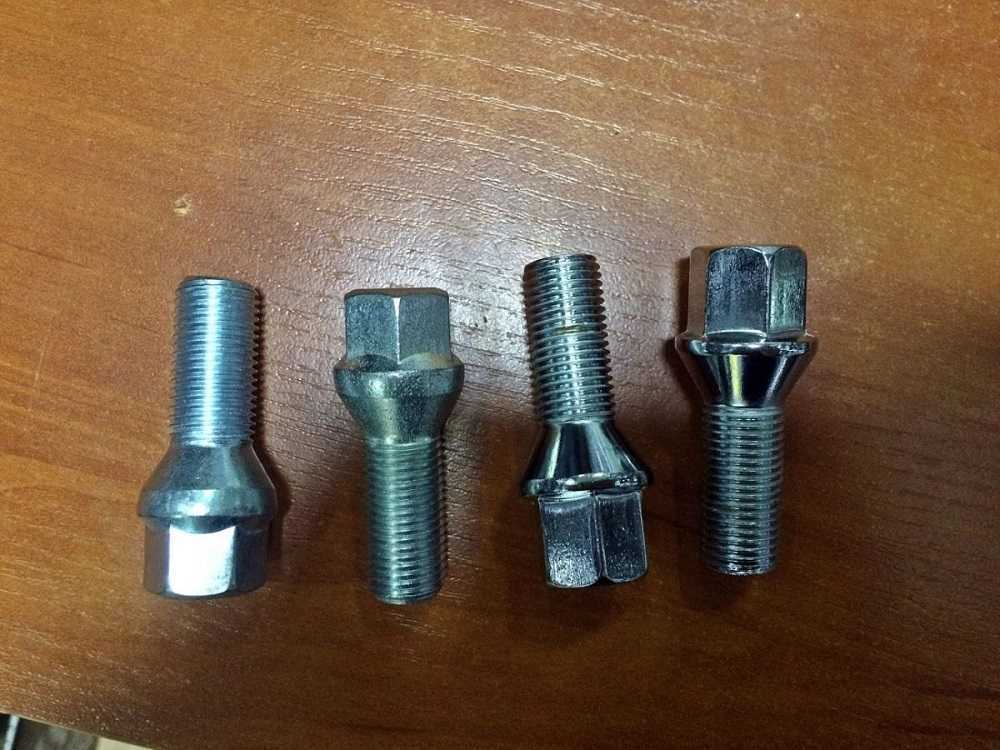Для автомобилей деталь выпускается в форме овала, сферы или конуса. Это необходимо для центрирования колеса. А вот размеры болтов отличаются в зависимости от автомобиля. Обычно, на легковых автомобилях болты диаметром от 12 до 14 мм. Отверстие под ключ и шаг самой резьбы также отличается. Шляпка может быть выполнена под «головку», шестигранник или специальный ключ.