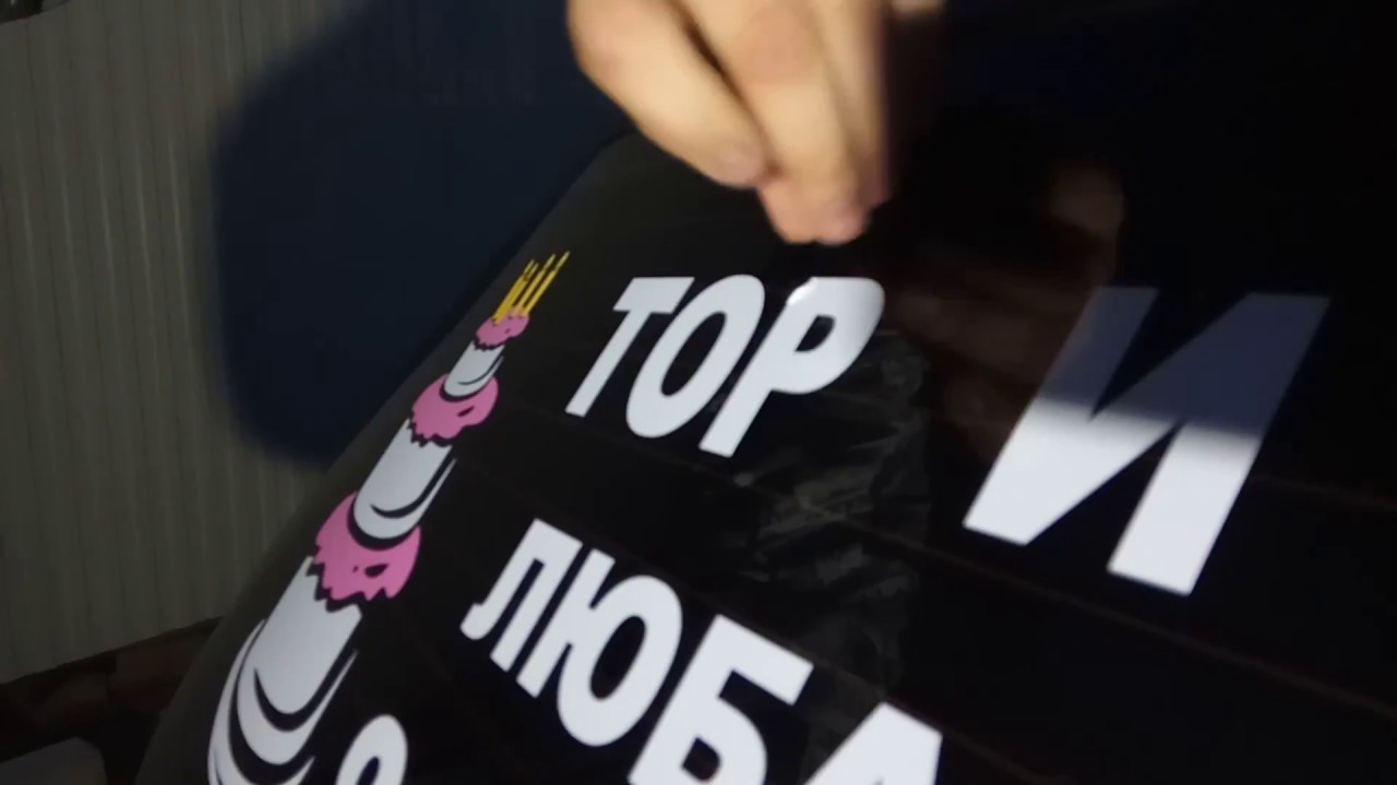 - Полностью приклеив все элементы наклейки, разровняйте наклейку, удалите монтажную плёнку и повторно прижмите стикер. Делайте всё это так же, как и приклеивая маленький стикер.