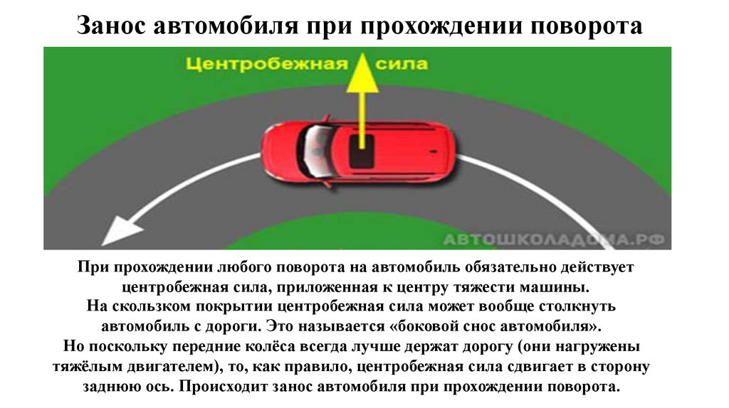 Что такое занос передних колес? — недостаточная поворачиваемость