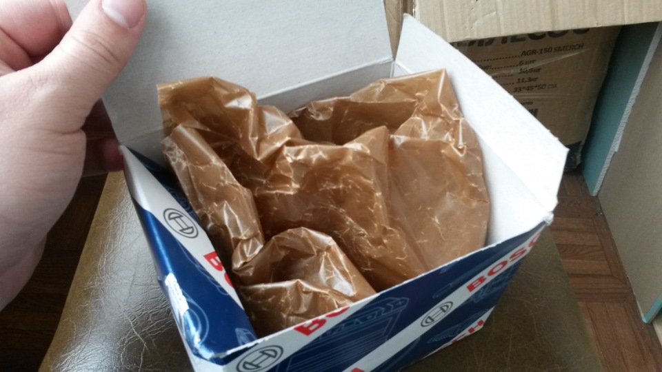 Заглянем внутрь. Оригинальная запчасть лежит в шуршащей бумаге, а поделка лежит в обычном пакете.
