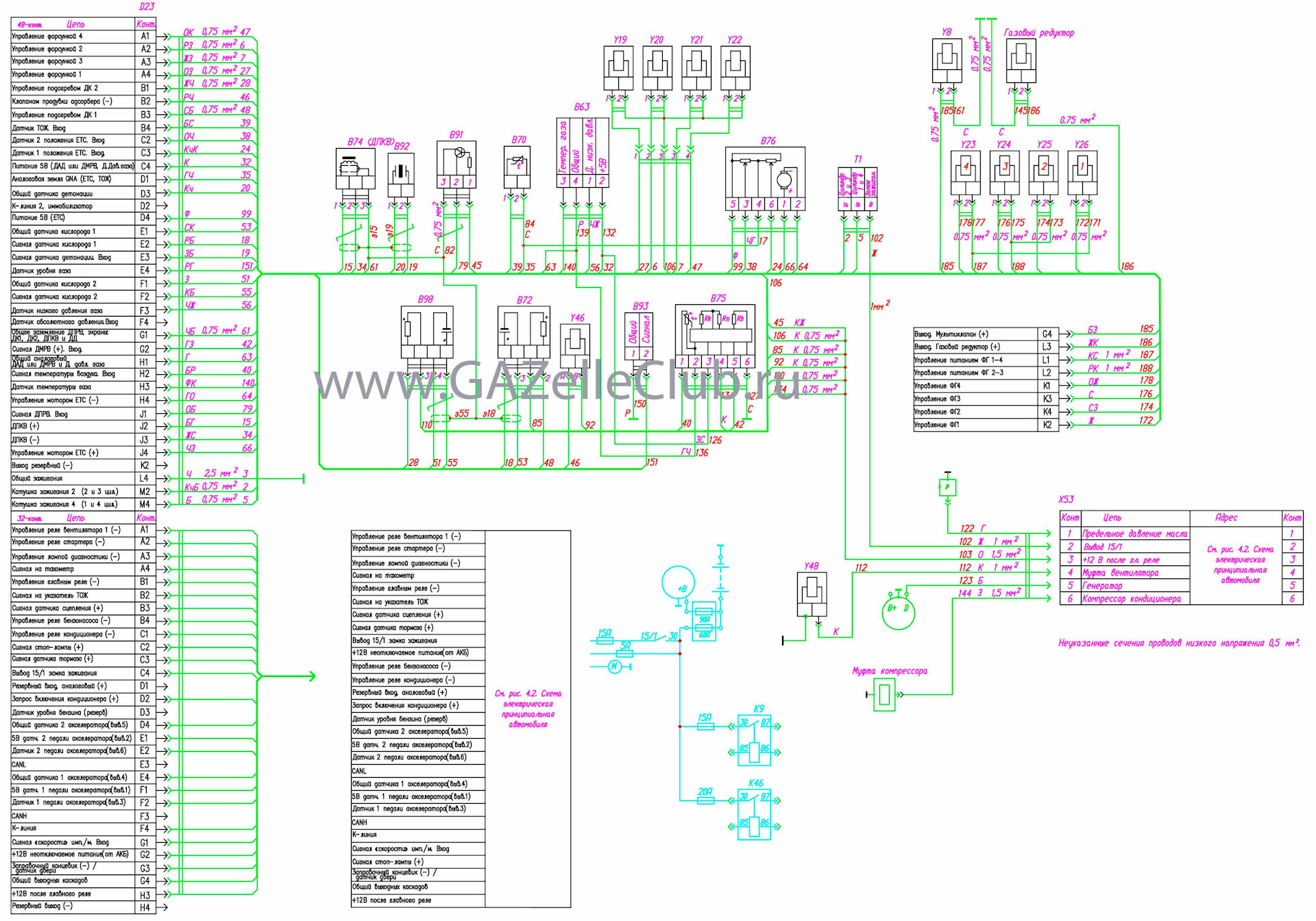 Дизельная Газель Заводская схема электропроводки Газель С появлением в линейке силовых агрегатов давно ожидаемых дизельных двигателей, в частности, мотора марки Cummins производства США, видоизменилась и схема электрооборудования. Одно с колодки замка зажигания через кнопку, чтобы исключить потери в замке там они тоже есть! Расчет длительности и фазы впрыска ведется блоком управления на основе базовых данных по топливоподаче при различных режимах работы двигателя в зависимости от частоты вращения коленчатого вала и разряжения в , характеризующего нагрузку двигателя , заложенных в память блока управления. Выводы: как видно из данной статьи, большое число модификаций, которым подвергалось семейство автомобилей. Бортовые версии пришлись по душе многим российским предпринимателям Например: Рулевой механизм ZF вместе с гидроусилителем; Сцепление и амортизаторы Sachs; Главный тормозной цилиндр Boschи вакуумный усилитель тормозов; Бампера от компании Magna; Модернизированный под Евро 3 силовой агрегат УМЗ ; Доработанные и улучшенные генератор и стартер.