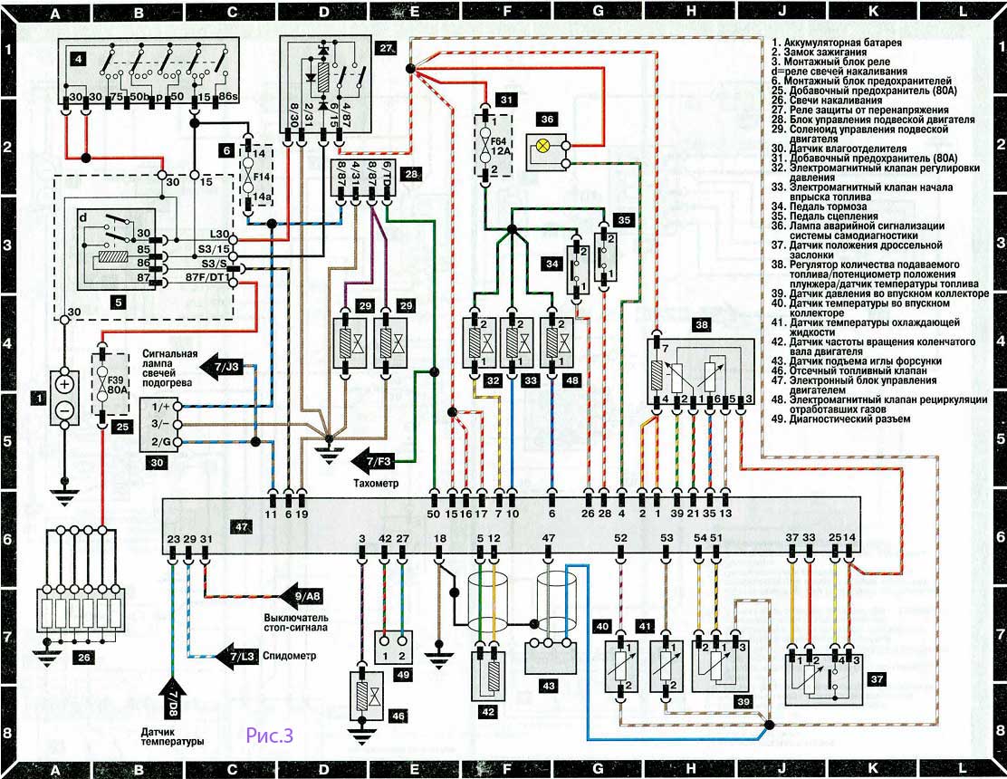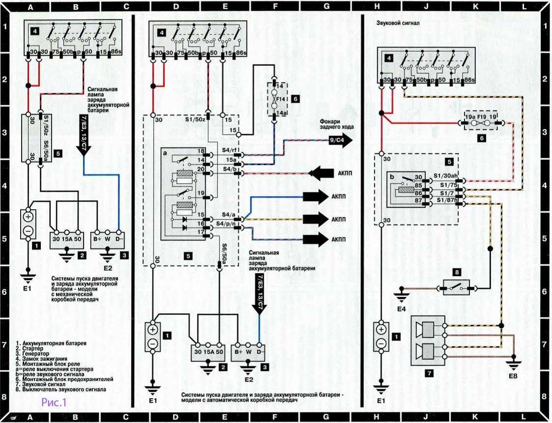 - Е1 – моторный отсек (провод отрицательной клеммы аккумуляторной батареи);