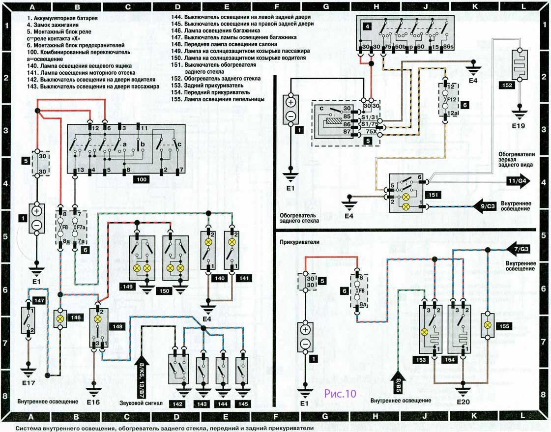 - Система внутреннего освещения, обогреватель заднего стекла