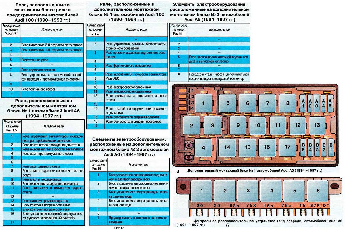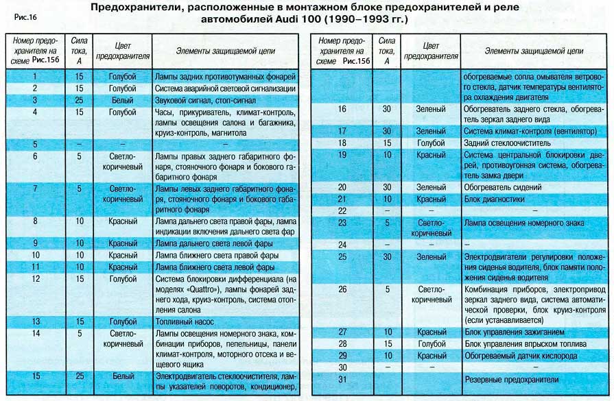 - 2 Предохранители и реле Audi 100 (C3), 1982 — 1991