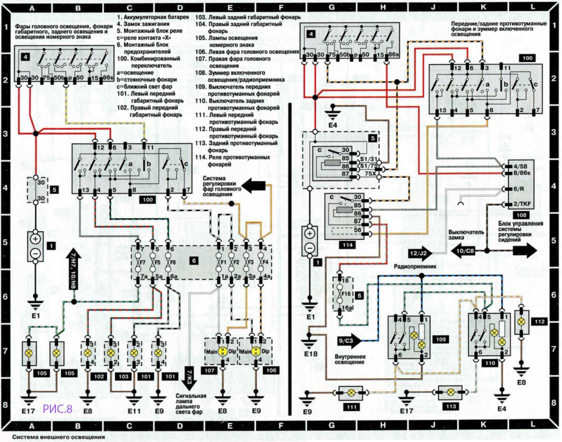 - 7 Схема электрооборудования автомобиля Ауди 100/А6 ( Audi 100/A6)
