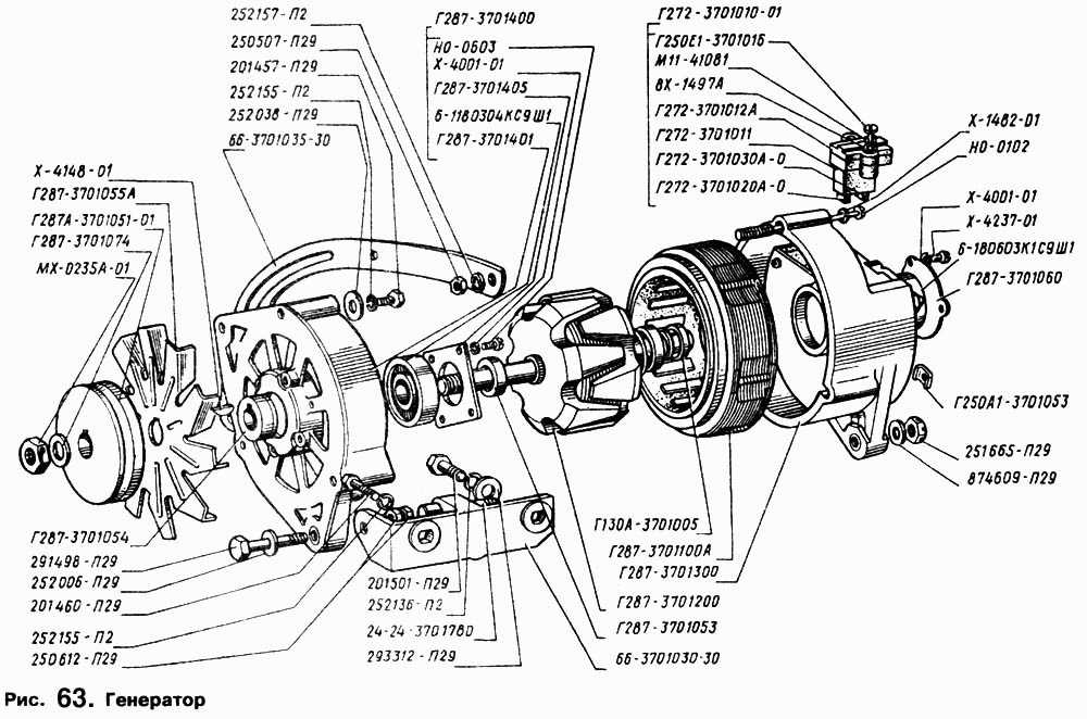 Генератор Г287 на ГАЗ-66 обладает мощностью на выходе 1260 Вт, что является достаточным для одновременной работы всего электрооборудования грузовика.
