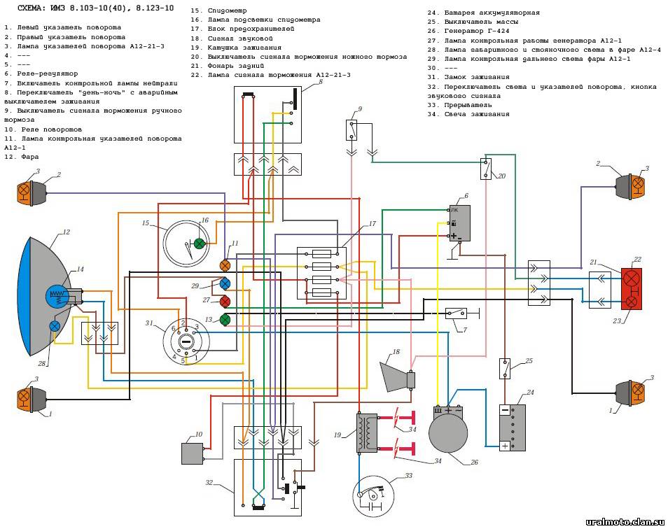 Схема электрооборудования Урала, Запчасти Урал, Авто запчасти Урал, Автомоб