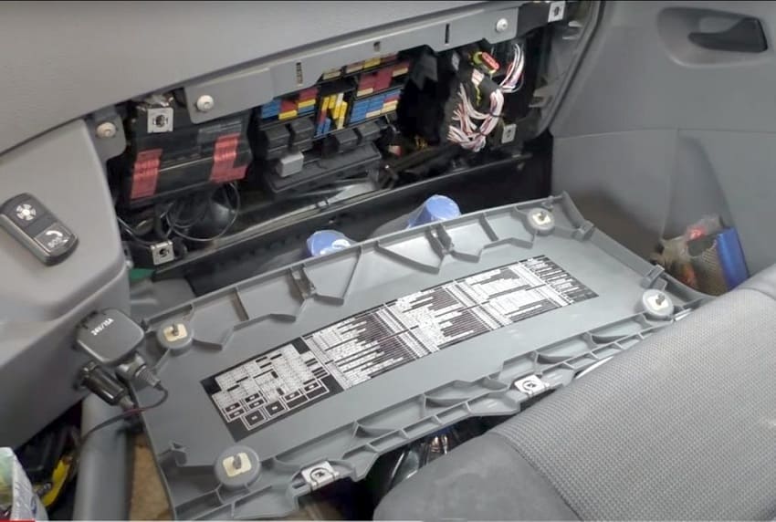 Монтажный блок предохранителей расположен в панели управления со стороны пассажира. Для доступа необходимо снять крышку блока. На внутренней стороне блока есть схема с обозначением элементов.
