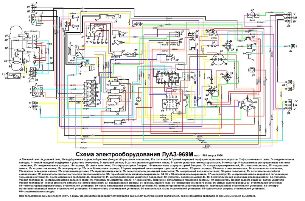 - 13 СХЕМА ЭЛЕКТРООБОРУДОВАНИЯ АВТОМОБИЛ Я ЛуАЗ 969 М — Март 1991 года