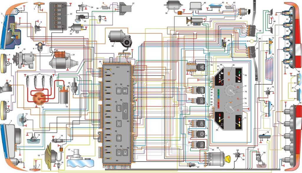 - 5 Проводка Москвич 2141: цветная схема