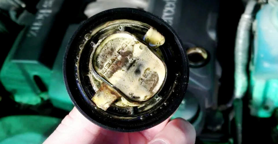 Типичные признаки конденсата — это белый налет на крышке маслозаливной горловины и щупе, который легко стирается тряпкой или бумажной салфеткой. Конденсат не меняет цвет и запах масла, которое остается жидким, прозрачным.