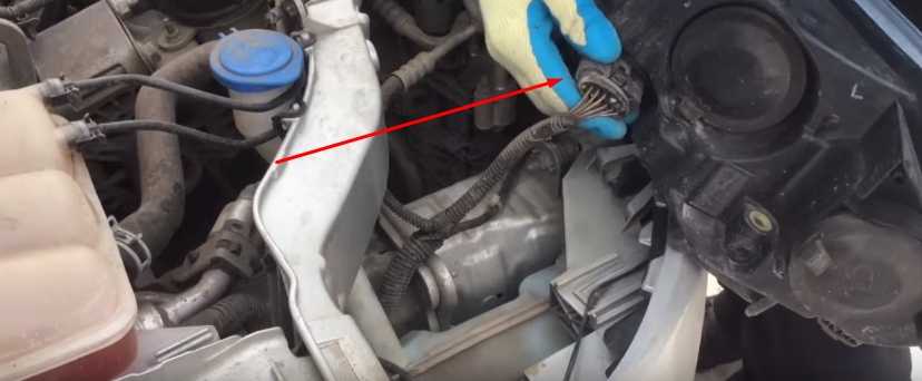 3. Отключаем разъем питания лампочек фары.