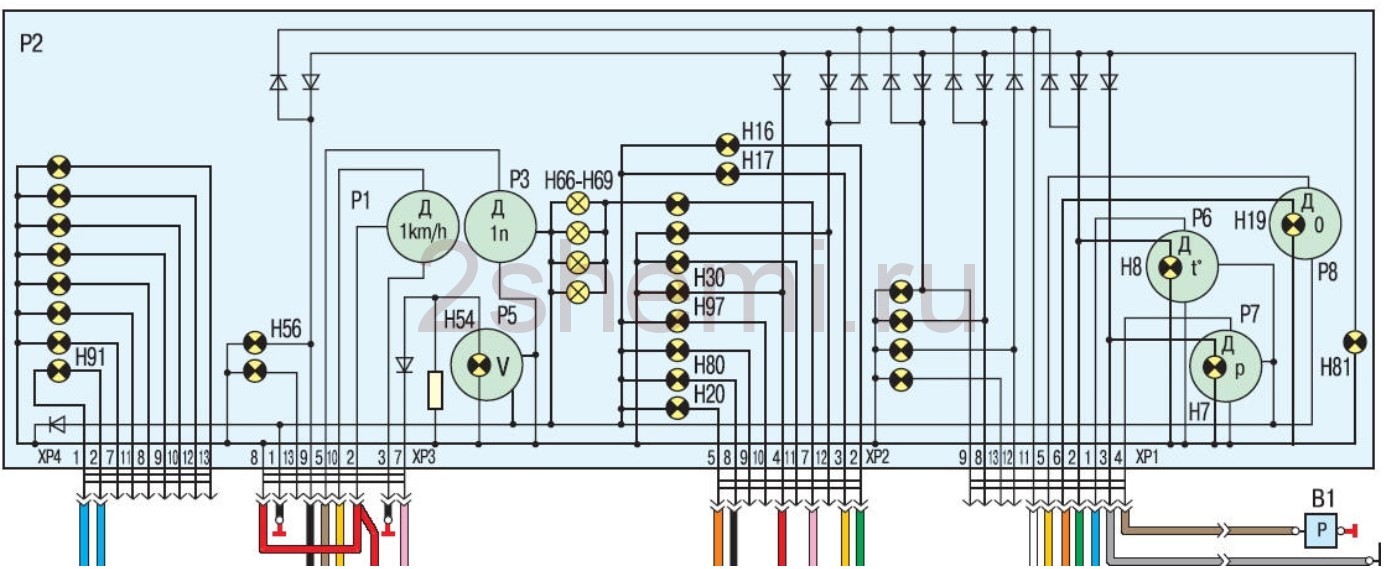 - 12 Схема и контакты комбинации приборов Газель
