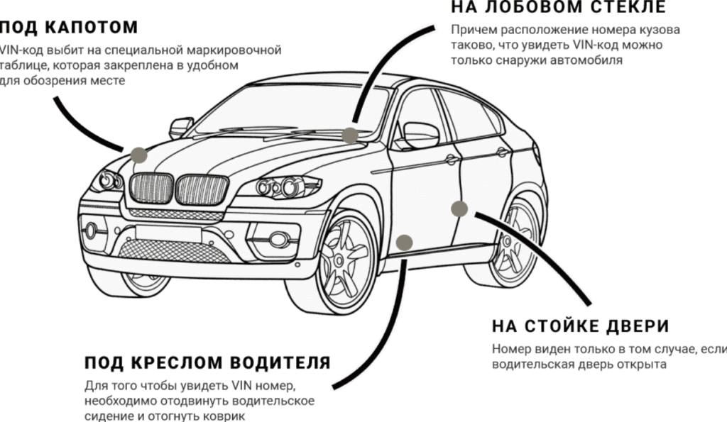 Обнаружить ВИН-код с маркировкой можно в следующих зонах:
