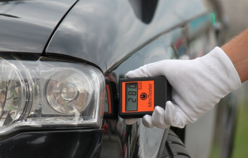 Можно использовать толщиномер краски, который позволит определить толщину лакокрасочного покрытия и сделать вывод о том, была ли машинаперекрашена. Так, например, мало какому сервису по кузовному ремонту удается покрасить автомобиль так же, как это делают на заводе. Поэтому толщина заводского слоя лакокрасочногопокрытия будет отличаться от перекрашенного.