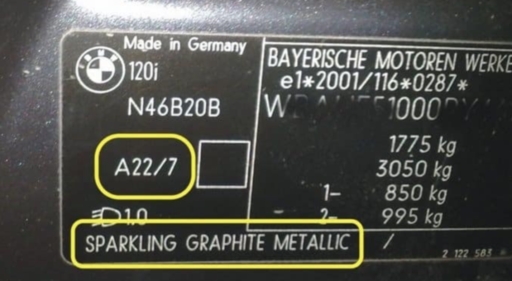Важно записать код краски и использовать его для определения цвета автомобиля