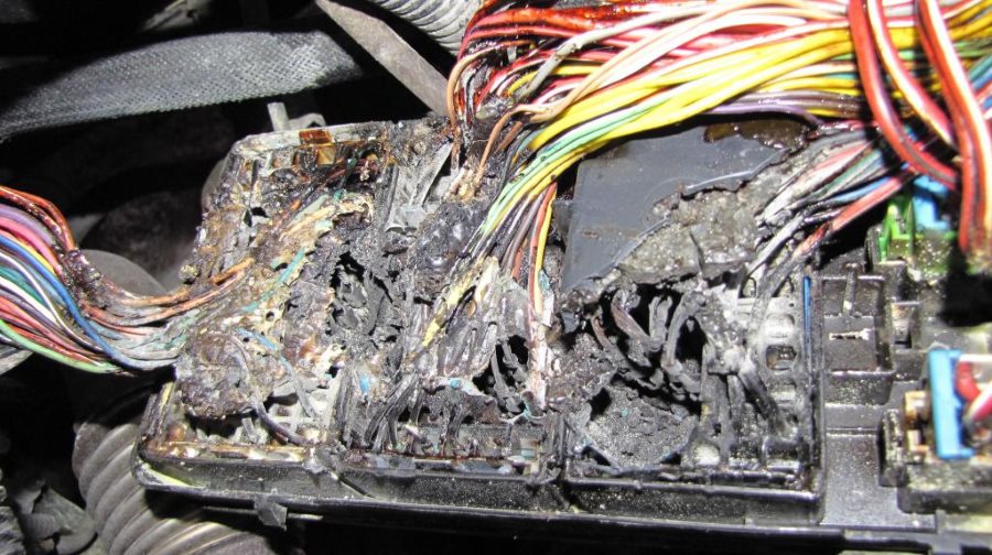 Короткое замыкание в машине, произошедшее из-за нарушенной изоляции, прежде всего связано с неправильной прокладкой проводов. Жгуты могут соприкоснуться с раскаленной трубой глушителя, а отдельные провода нередко пережимаются какими-либо предметами во время проведения ремонта. Некоторые детали автомобиля буквально окружены проводами, поэтому о поврежденной изоляции никто не догадывается до самой поломки.