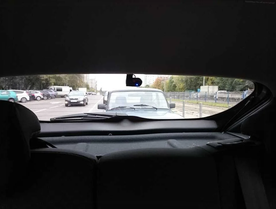 Боковые стекла задних дверей предлагают отличный обзор, однако место установки регистратора может мешать прохожим и вызывать недовольство со стороны других водителей.
