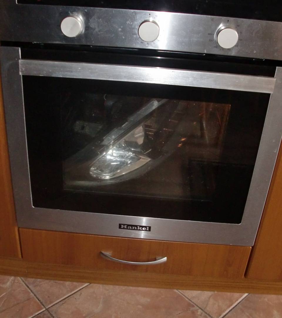 Вторую фару расклеивал в воде, эффект меньше чем от духового шкафа, да и потом пришлось стекло от воды оттирать т.к немного попало в фару через открытое отверстие.