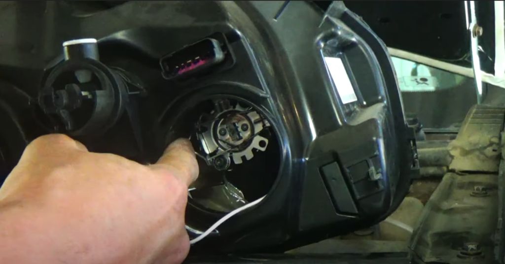 - Затем нужно нажать на замок и отсоединить колодку проводки. Затем лампочка отключается.