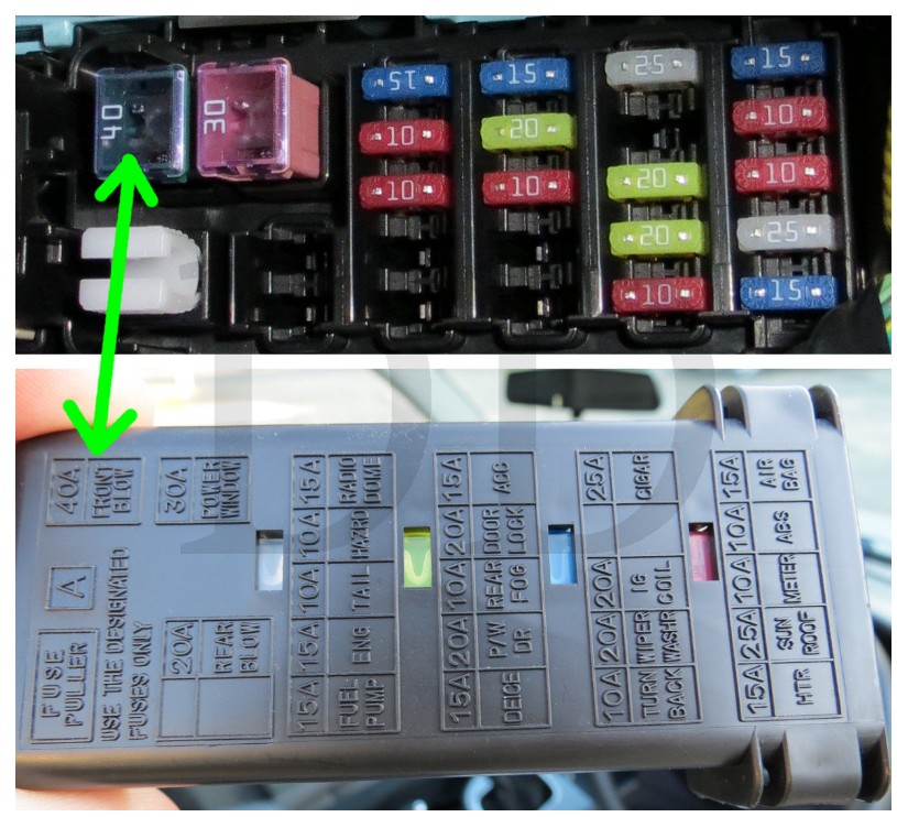 | 20 | 15А Правая фара (ближний свет), правая газоразрядная фара, реле ближнего света фар |