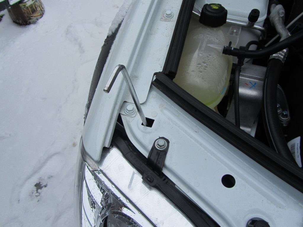 Затем нужно открыть капот и найти регулировочный болт и вставить туда шестигранник:
