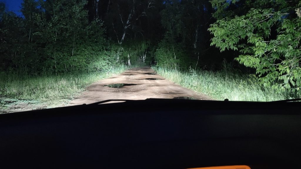 Родной свет фар был неплох, но не устраивал — слабоват. Мы привыкли к более качественному освещению дороги по Логану и Фиесте. И регулировка фар, две недели назад, хоть и помогла, но незначительно.