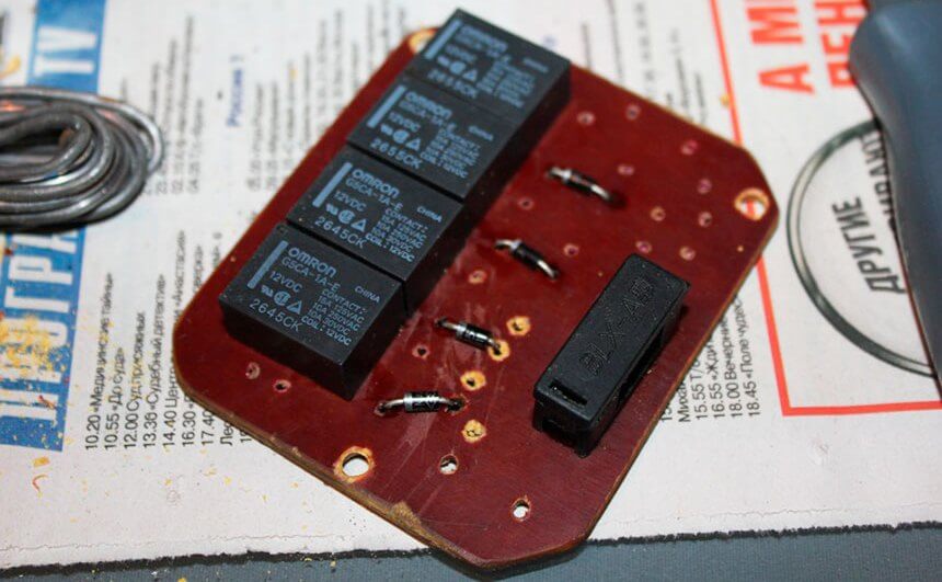 - Плата (на нее в дальнейшем устанавливаются диоды и реле).