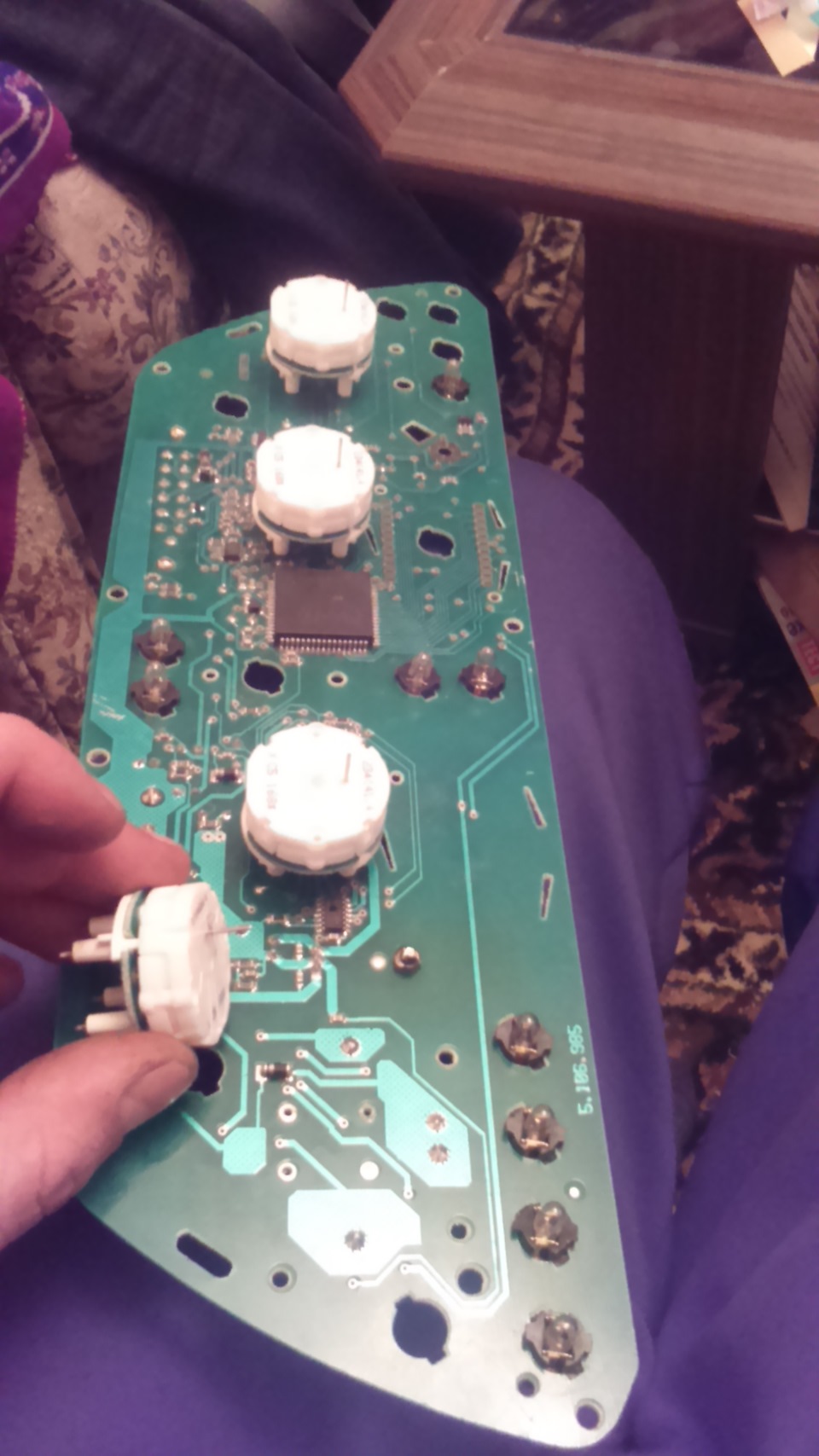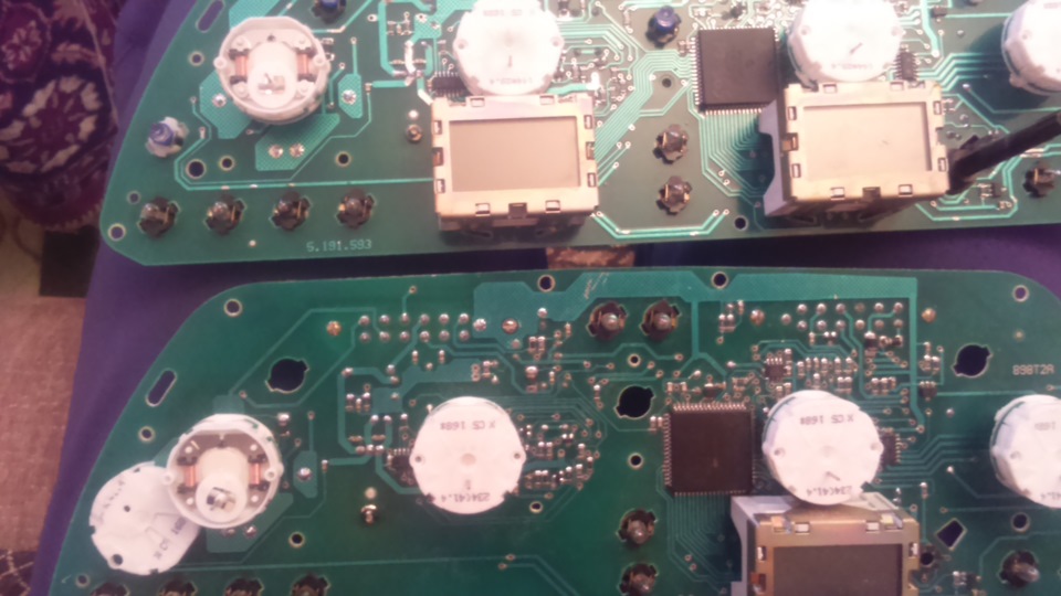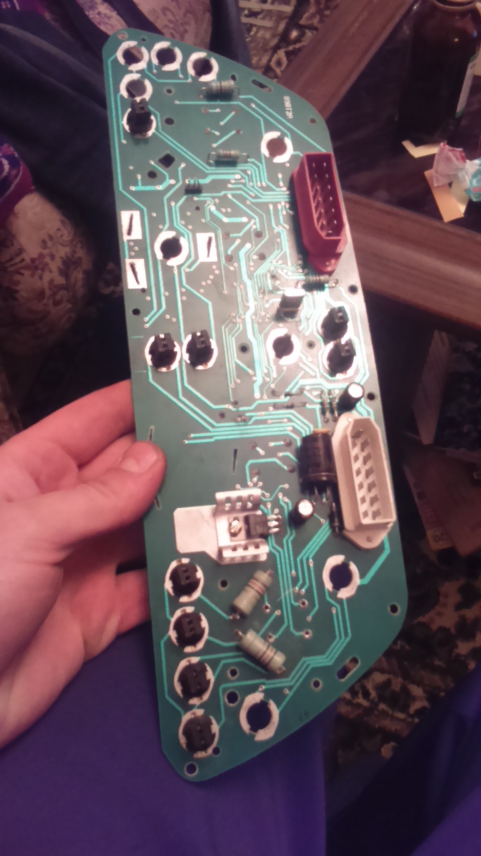 Далее пошёл в машину всё установил, всё работает, датчик тоже и стал радоваться — но не долго!На следующий день включив зажигание — не одна стрелка не поднялась, горели только лампочки, приборы и жк дисплеи не работали, Опять снял, разобрал, перепаял все диоды (какие смог), резисторы и 3 конденсатора, установил но реакции небыло ((( ( единственное что забыл перепаять а нужно было — это регулятор напряжения может в нём дело было, но чтоуж теперь)Поехал в магазин, глянул приборку от 2114 VDO и ах.ел от увиденного ценника- цена на тот момент составляла 4700 руб, в другом магазине почти 6000 руб, подумал и решил, что нужно попробовать съездить на разборку . Приехав туда мне была предложена (на время) приборка от первых 2114 за 1500руб с 1 жк, а когда появится с 2 жк я отдам эту и мне дадут уже с 2 жк, и я сразу же согласился