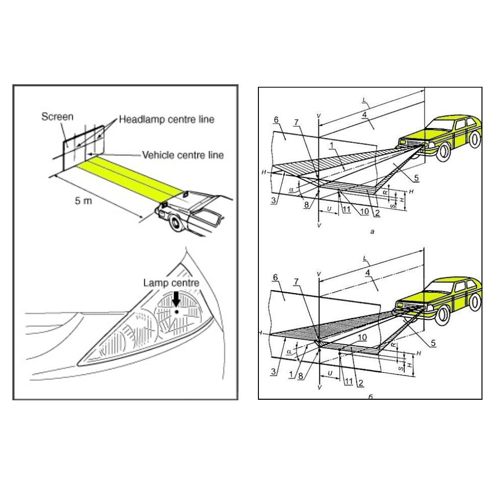 Выявить неправильный световой поток водитель может самостоятельно, осветив темную вертикальную поверхность с разных расстояний. Световой конус, направленный влево, требует немедленной регулировки. Равномерно поднятый или опущенный свет для встречных машин менее опасен, но плохо освещает дорогу водителю.