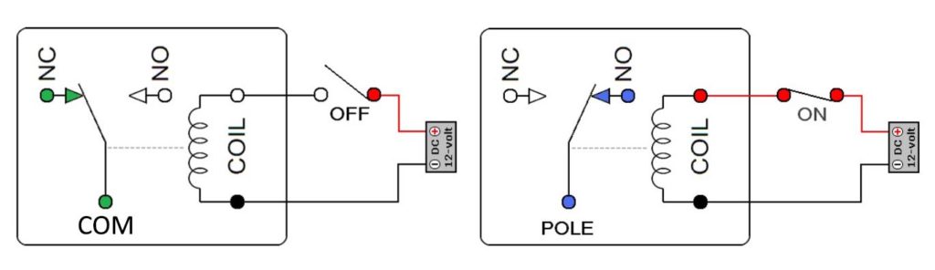 - NC – Normal Closed, нормально закрытый. При неактивном реле данный контакт соединён с COM. При активации реле он размыкается с COM.