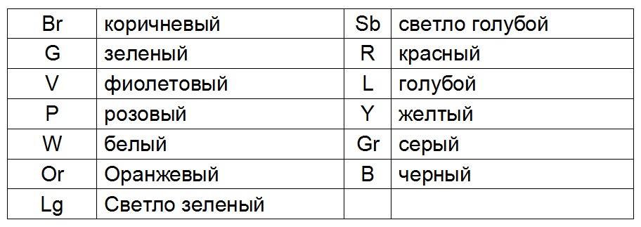 Для удобства, соединения между элементами на цветных схемах изображены разными цветами, соответствующими цветам проводов, а на некоторых схемах также указывается сечение провода. На черно-белых схемах цвета соединений обозначаются буквами: