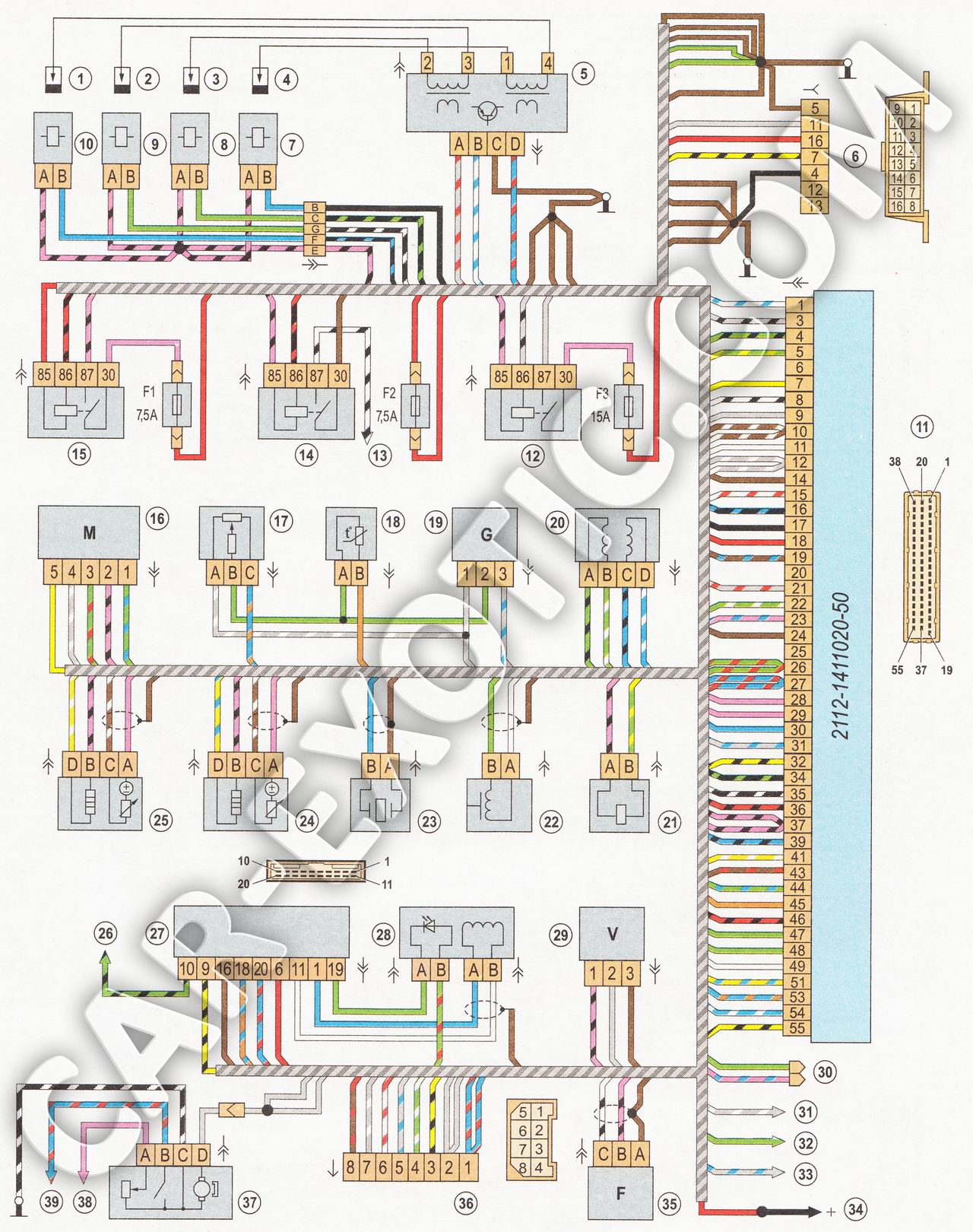 Принципиальная схема электропроводки автомобиля ВАЗ 2112 (16 клапанного)