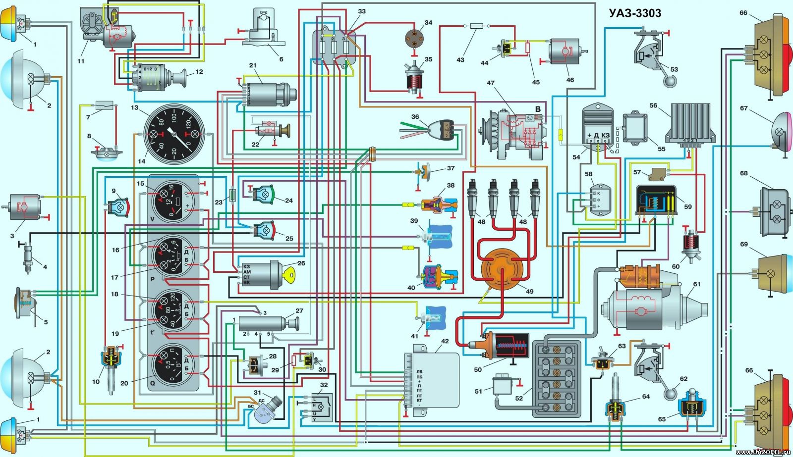 Схема электропроводки УАЗ 3303 — УАЗофил.ру
