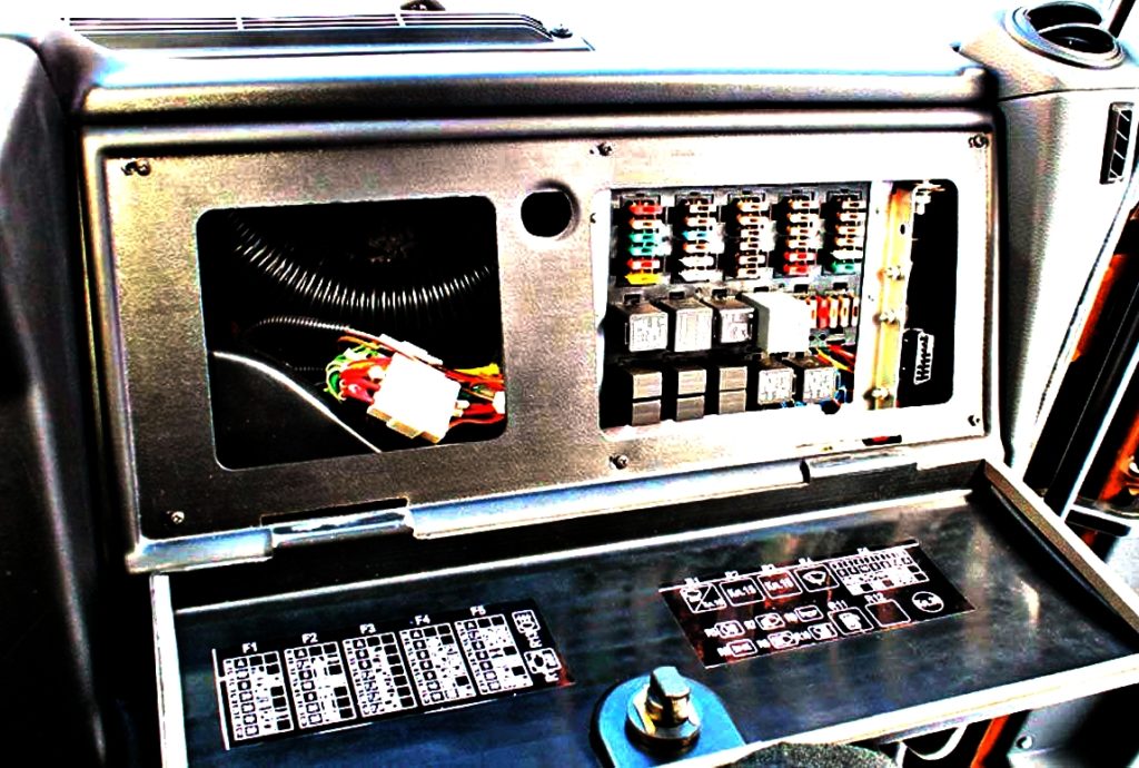 В отдельных модернизированных моделях Урал блок предохранителей и реле может находится в панели с правой стороны, со стороны пассажира, за защитной крышкой, на которой будет нанесена актуальная схема.