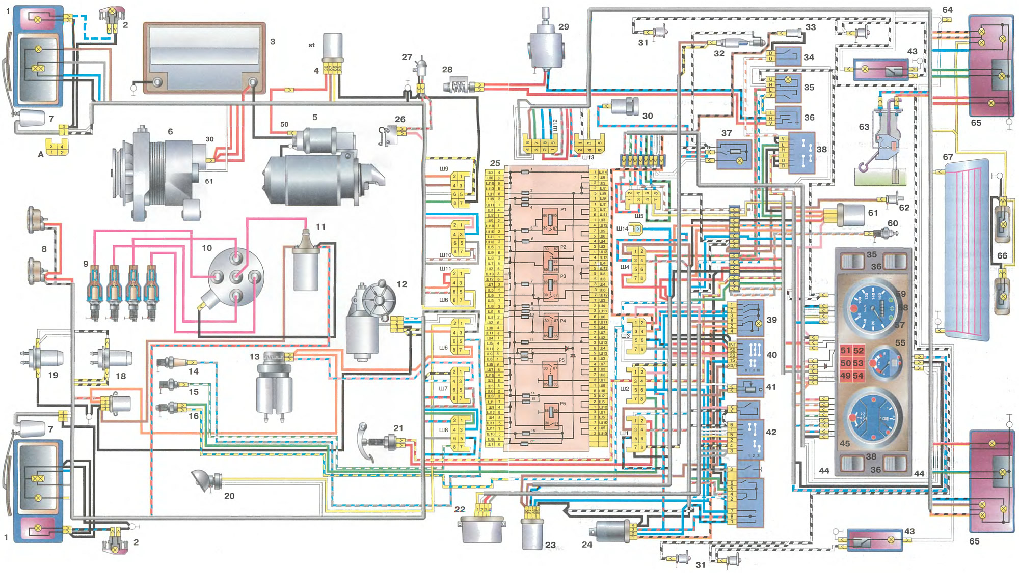 Схема блока предохранителей ВАЗ 2107 (полная электрическая схема)