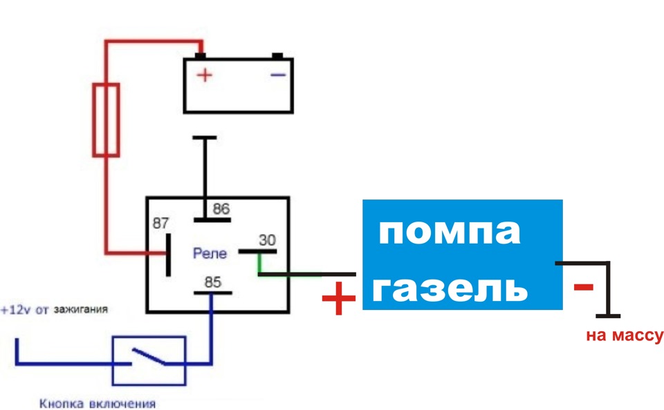 - Синий — питание (провод прямо от аккумулятора).