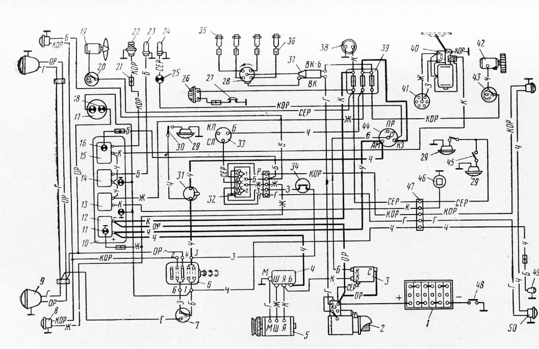 Электросхема УАЗ 452 сама по себе достаточно простая — однопроводная.