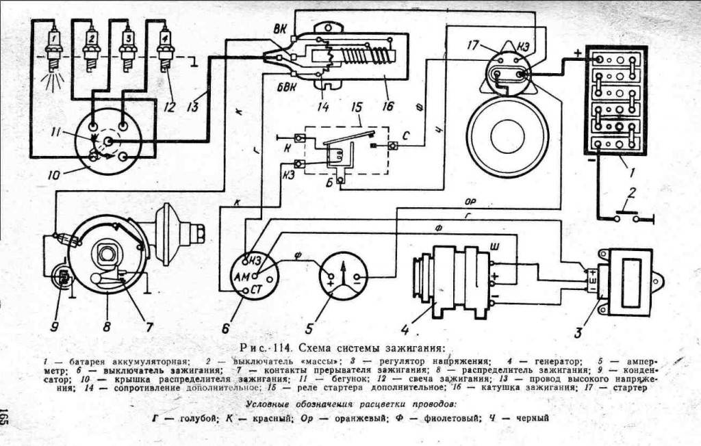 Схема проводки уаз 469 старого образца с контактным зажиганием стартера