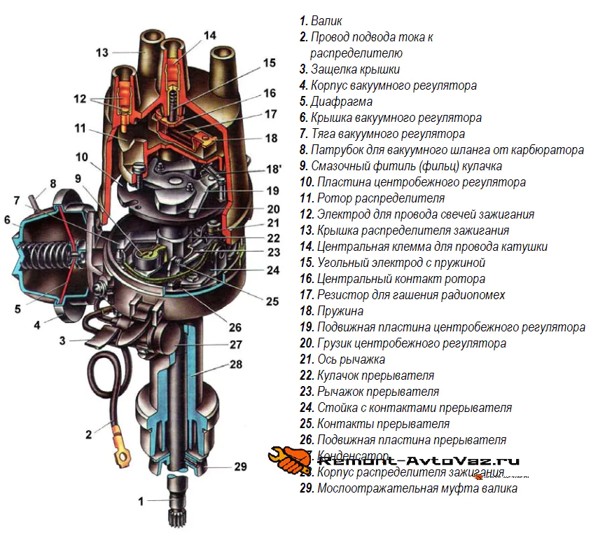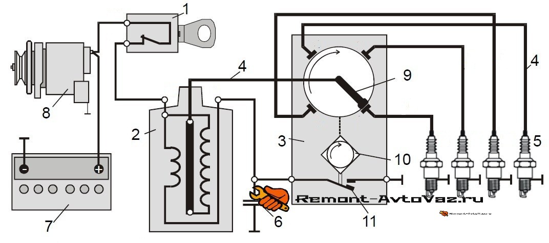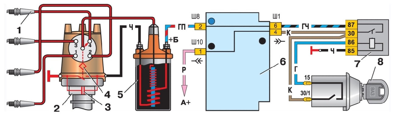 Система зажигания ваз 2101, 02. Схема, устройство, рисунок.