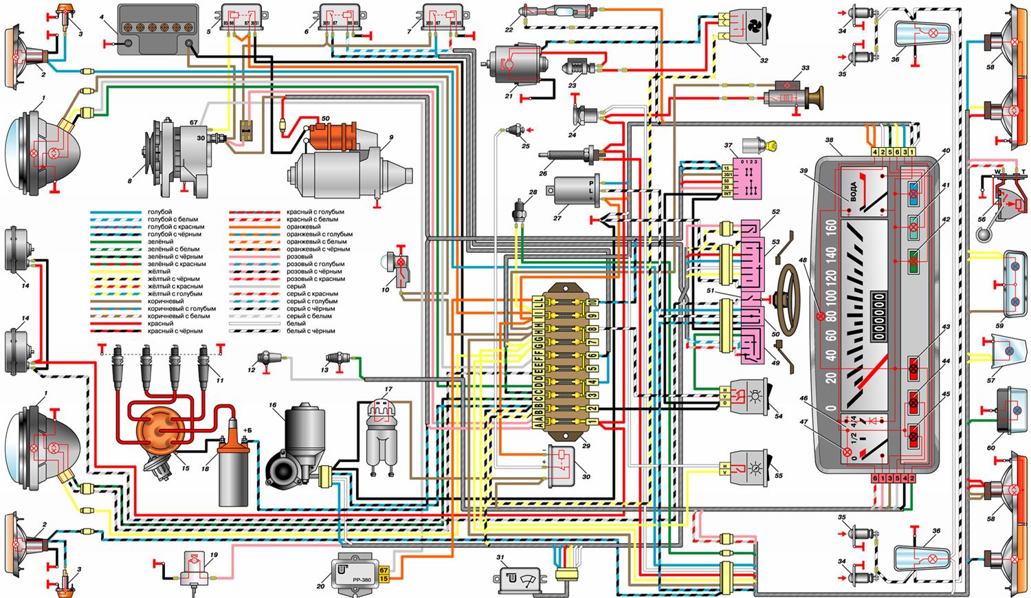 Электросхема, предохранители и реле ваз 2101