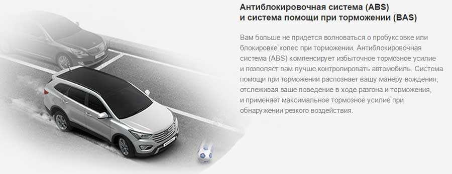 Антиблокировочная система (ABS) — это основной вид БАС, который предотвращает блокировку колес при резком торможении. ABS действует путем изменения давления в тормозных механизмах каждого колеса, чтобы достичь наилучшего сцепления с дорогой при торможении. Это позволяет водителю сохранять контроль над автомобилем и уменьшить длину тормозного пути.