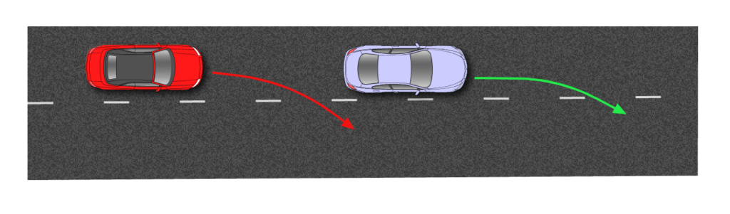 Например, возникла пробка, и два автомобиля решили одновременно перестроиться. В идеальной ситуации на полосе достаточно места для двоих и оба автомобиля могут синхронно с одной скоростью и под одним углом выполнить перестроение, но такого на практике не бывает. Получается столкновение, а виноватым будет тот, кто по факту не соблюдает дистанцию, скоростной режим, не обозначает свои намерения сигналами поворота.