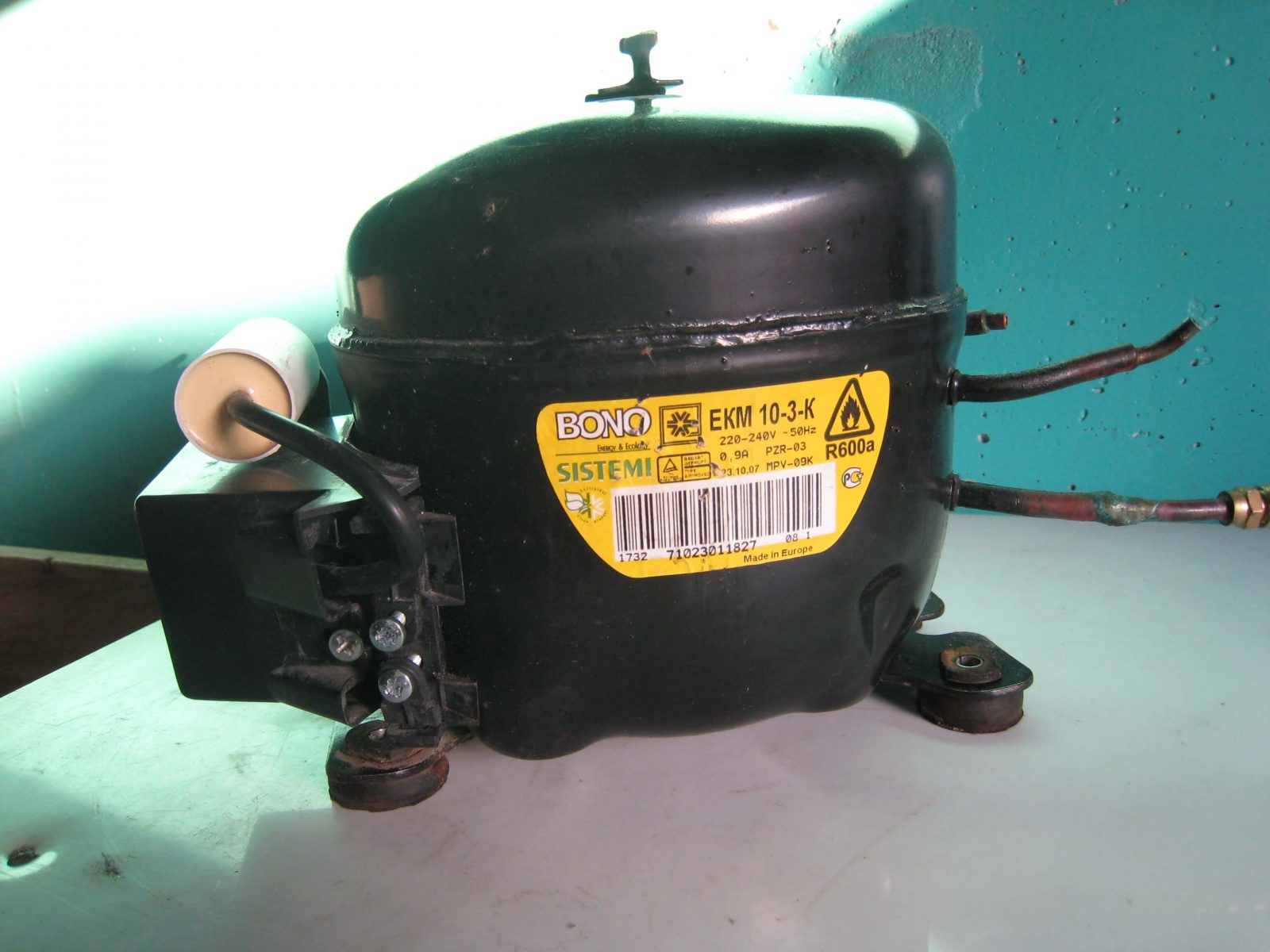 - Если давление немного не доходит до 6 Атм, такой двигатель может устанавливаться в холодильниках средних размеров. Показания доходят до 4-5 Атм, значит, мотор может использоваться в однокамерных холодильниках. Компрессор с давлением менее 4 Атм — нерабочий.