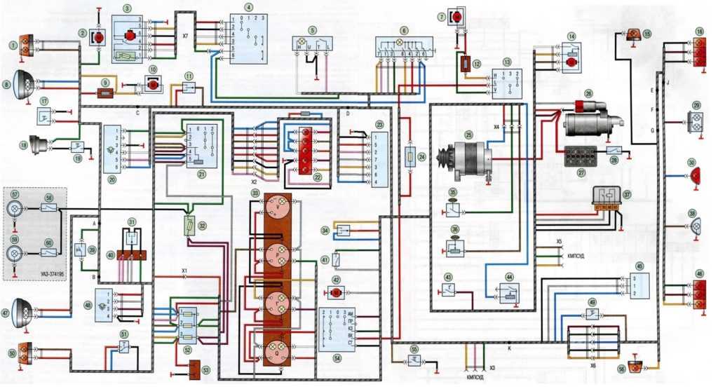 Схема электросистемы УАЗ Хантер 409