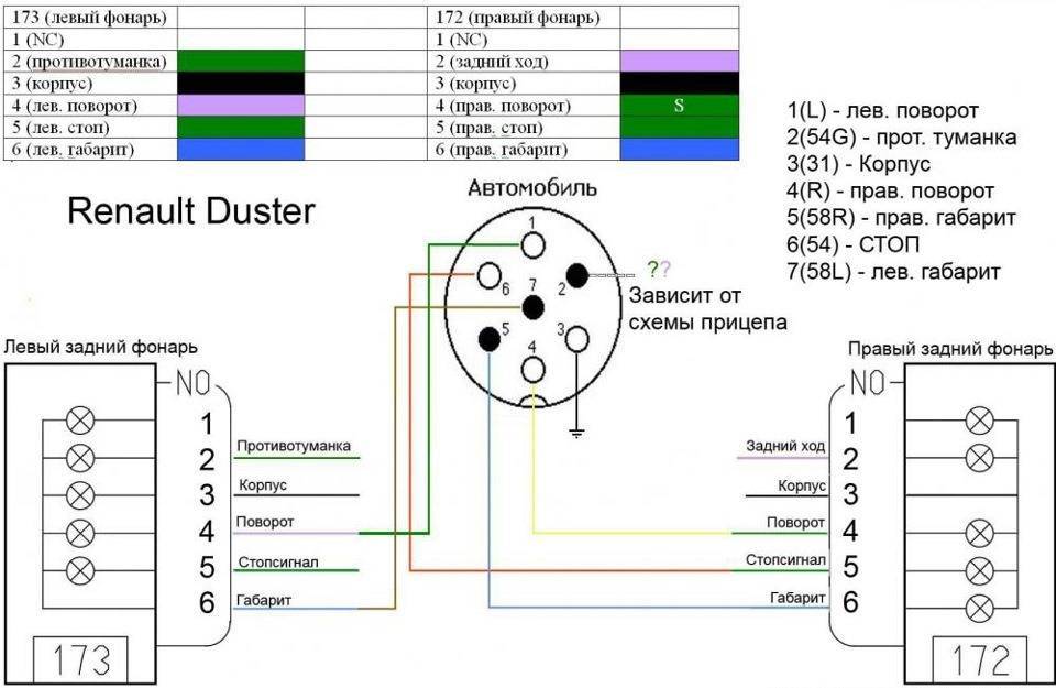 Для Рено Дастер применяются чаще всего cемиконтактные (7 pin) разъемы европейского типа (РФ).