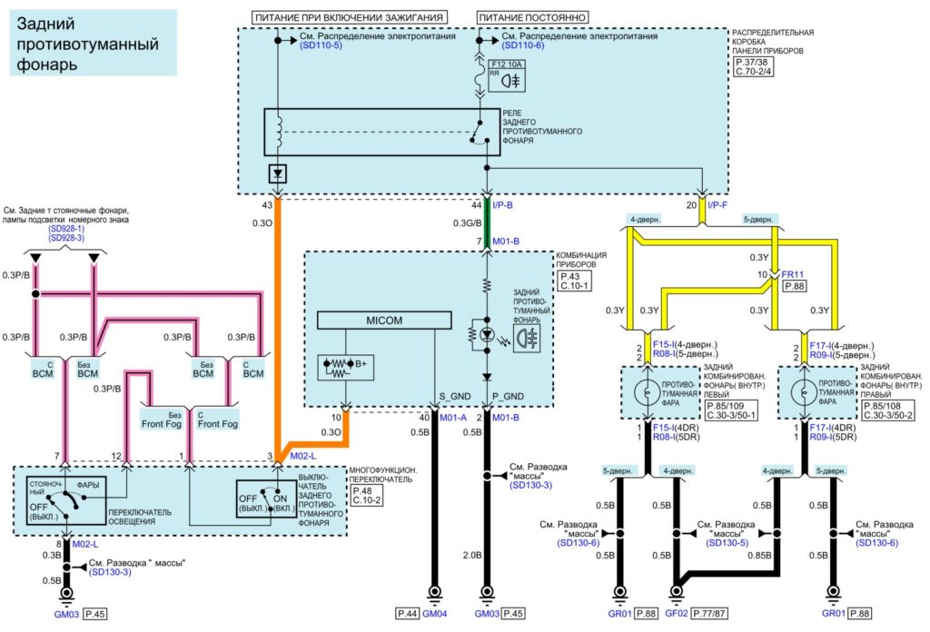 Стоит оговорить момент, связанный с попытками подсоединить передние ПТФ Киа Рио 2 параллельно с задними. Этого лучше не делать. Нагрузка на реле и предохранитель рассчитана на подключение одной пары противотуманных фар на Киа Рио. Кроме того, сзади они светят достаточно ярко и ослепляют идущих в попутном направлении водителей транспортных средств.