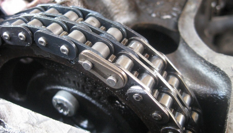 Распределительный вал приводится в действие цепью без натяжителя. Он не предусмотрен, в связи с чем натяжение приходится регулярно проверять и настраивать.