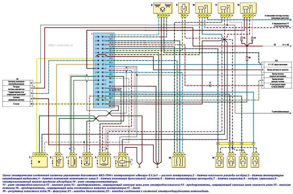 Общая схема электрооборудования ВАЗ 21074 инжектор